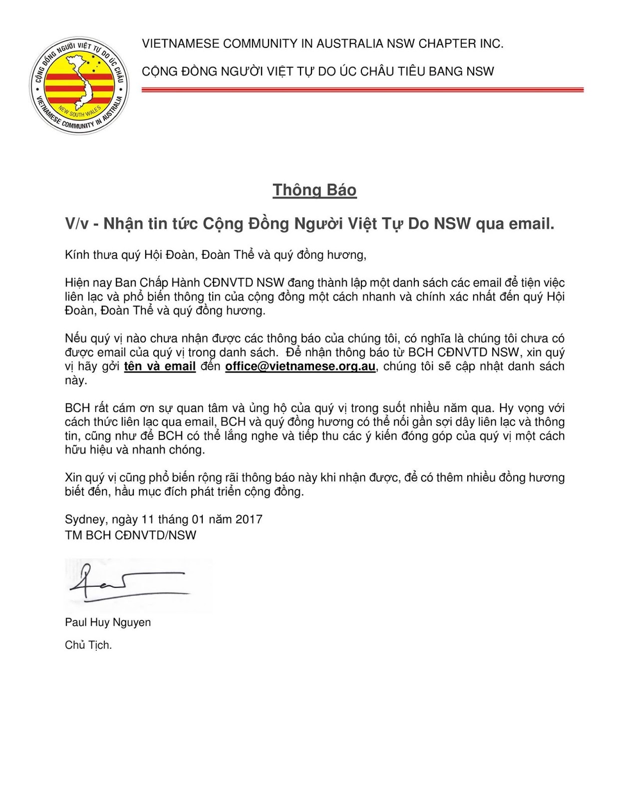 THƯ MỜ & THÔNG BÁO của CĐNVTD/Sydney